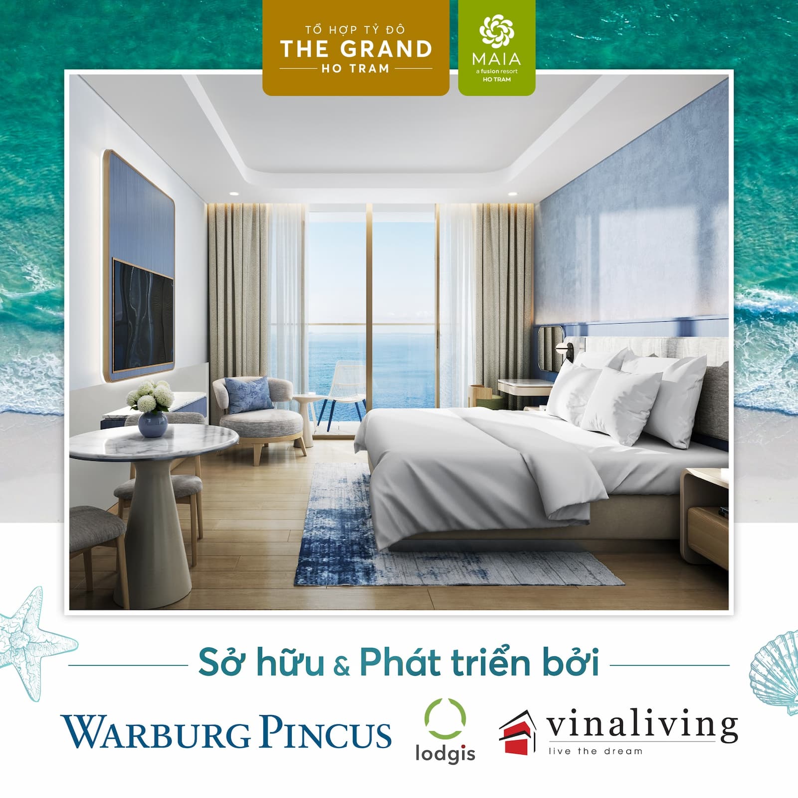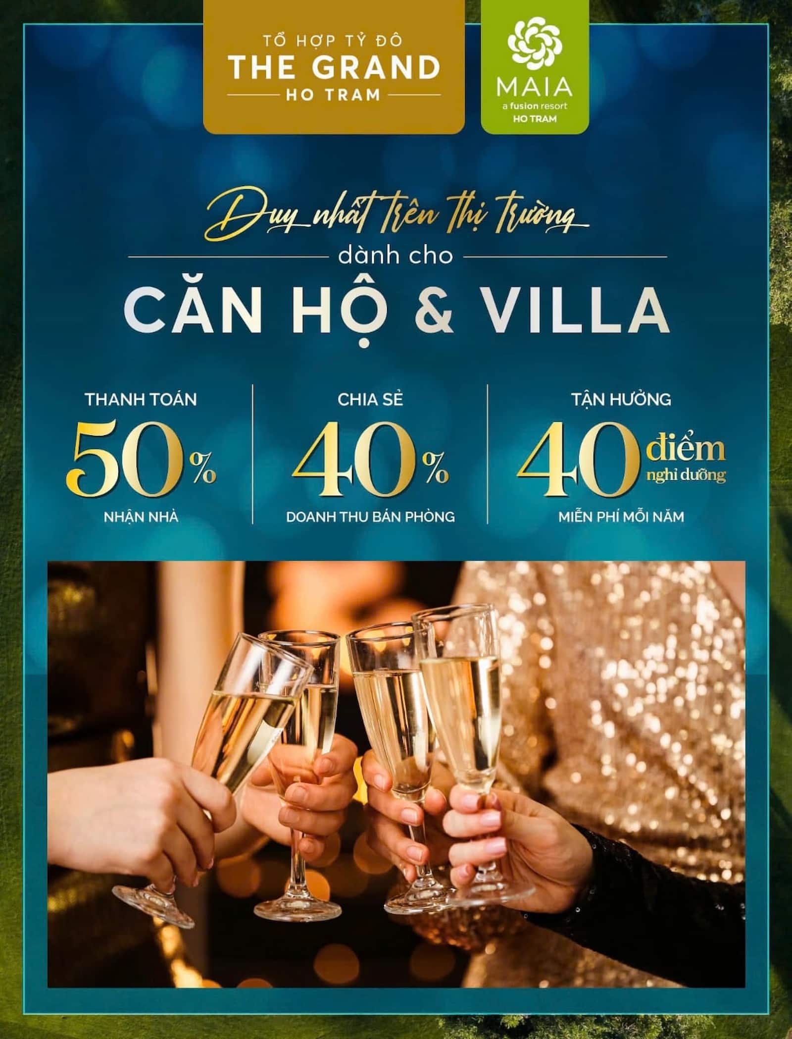 Maia Resort Hồ Tràm có tổng diện tích 70.000m², gồm 1.244 căn hộ và 36 biệt thự, đa dạng loại hình: từ căn hộ Studio (35m2); 1PN (49-60m2); 2PN (65 -90m2); Penthouse: 200m2, đến biệt thự: 2PN (150m2); 3PN (220m2). Maia Hồ Tràm với Vị trí vàng trong tổ hợp nghỉ dưỡng đẳng cấp bậc nhất Đông Nam Á – The Grand Ho Tram. 100% căn hộ đều sở hữu view biển, có tầm nhìn trực diện biển, được thiết kế tối ưu không gian để đón gió và ánh sáng tự nhiên, giúp chủ nhân tận hưởng trọn vẹn không gian nghỉ dưỡng trong lành, đúng nghĩa “đưa thiên nhiên vào trong từng hơi thở”. riêng các căn góc còn “độc quyền” thêm tầm nhìn xanh mát hướng sân golf, Từ ban công, bạn có thể thu trọn khung cảnh từ những thảm cỏ mượt mà của sân golf đến rừng nguyên sinh Phước Bửu rộng 11.000ha.